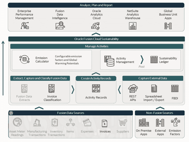 Oracle Fusion Cloud Sustainability is an integrated solution designed to help organizations: