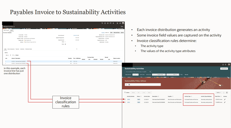 Oracle automates sustainability data collection directly from Accounts Payable invoices.
