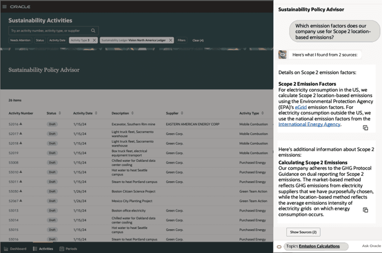 Unlike traditional sustainability tools, Oracle’s solution is embedded within the Oracle Fusion ecosystem, ensuring data flows directly from operational systems such as Accounts Payable, Procurement, and SCM.